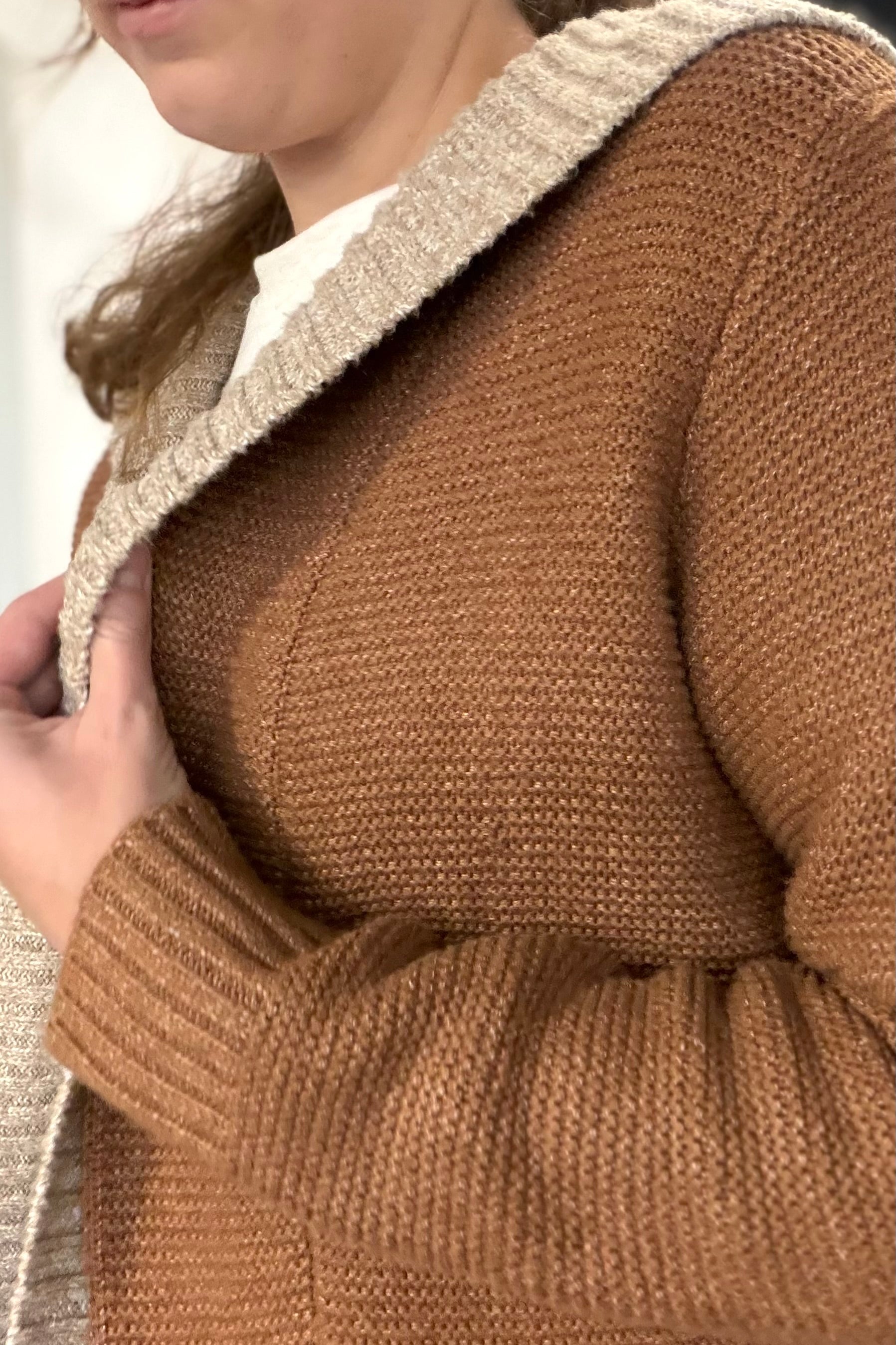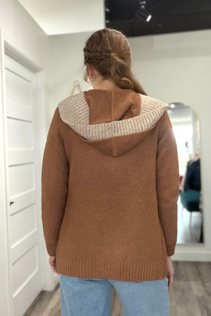 Cozy up in the Christine Camel Cardigan with Pocket, your new favorite go-to for chilly days. This hooded, longer cardigan features a thick knit that keeps you warm while the open front and double-layer look add a stylish twist. Perfect for layering, it effortlessly combines comfort with playful charm—plus, those pockets are just right for stashing your essentials or keeping your hands toasty!
