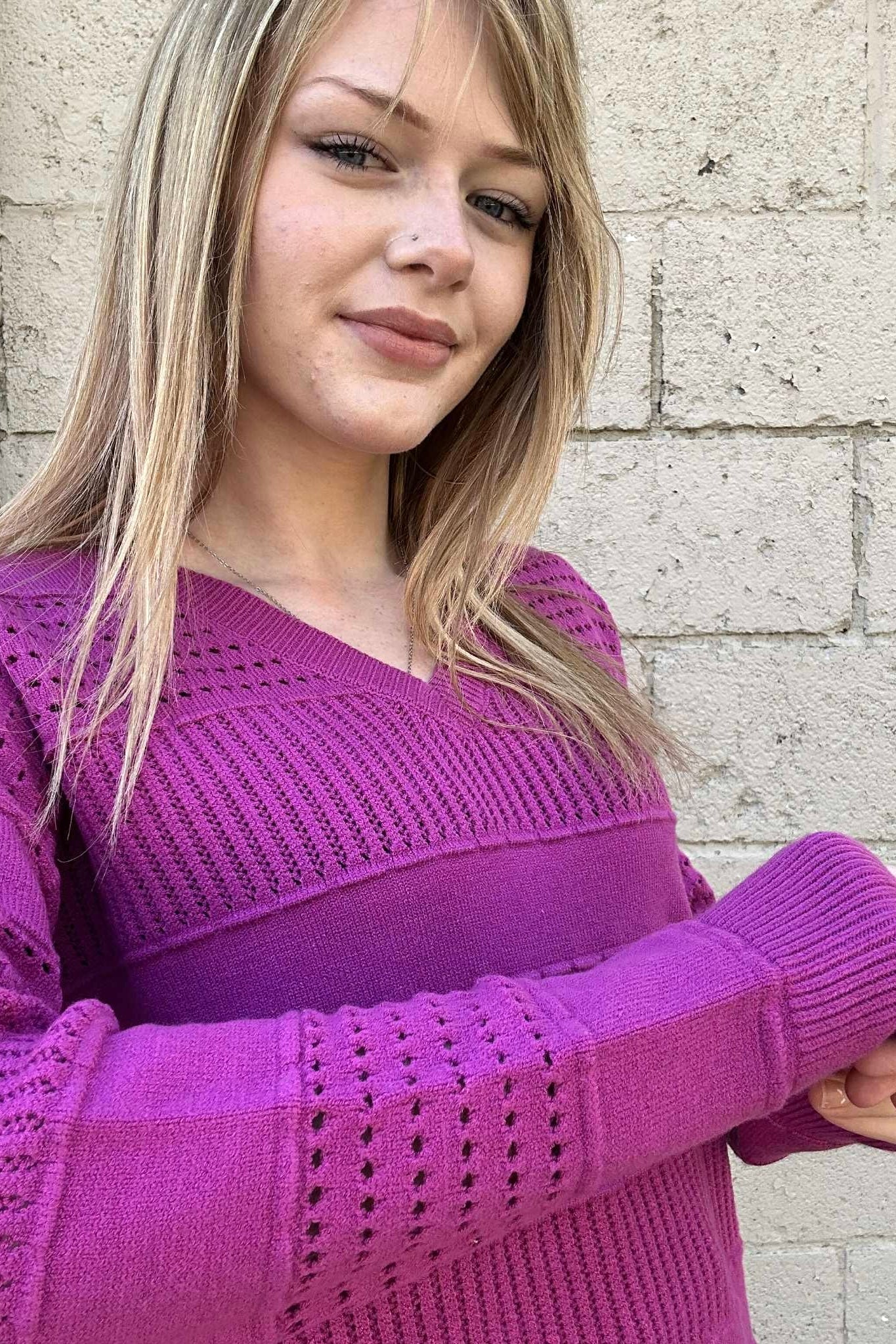 Johanna Magenta V-Neck Striped Top