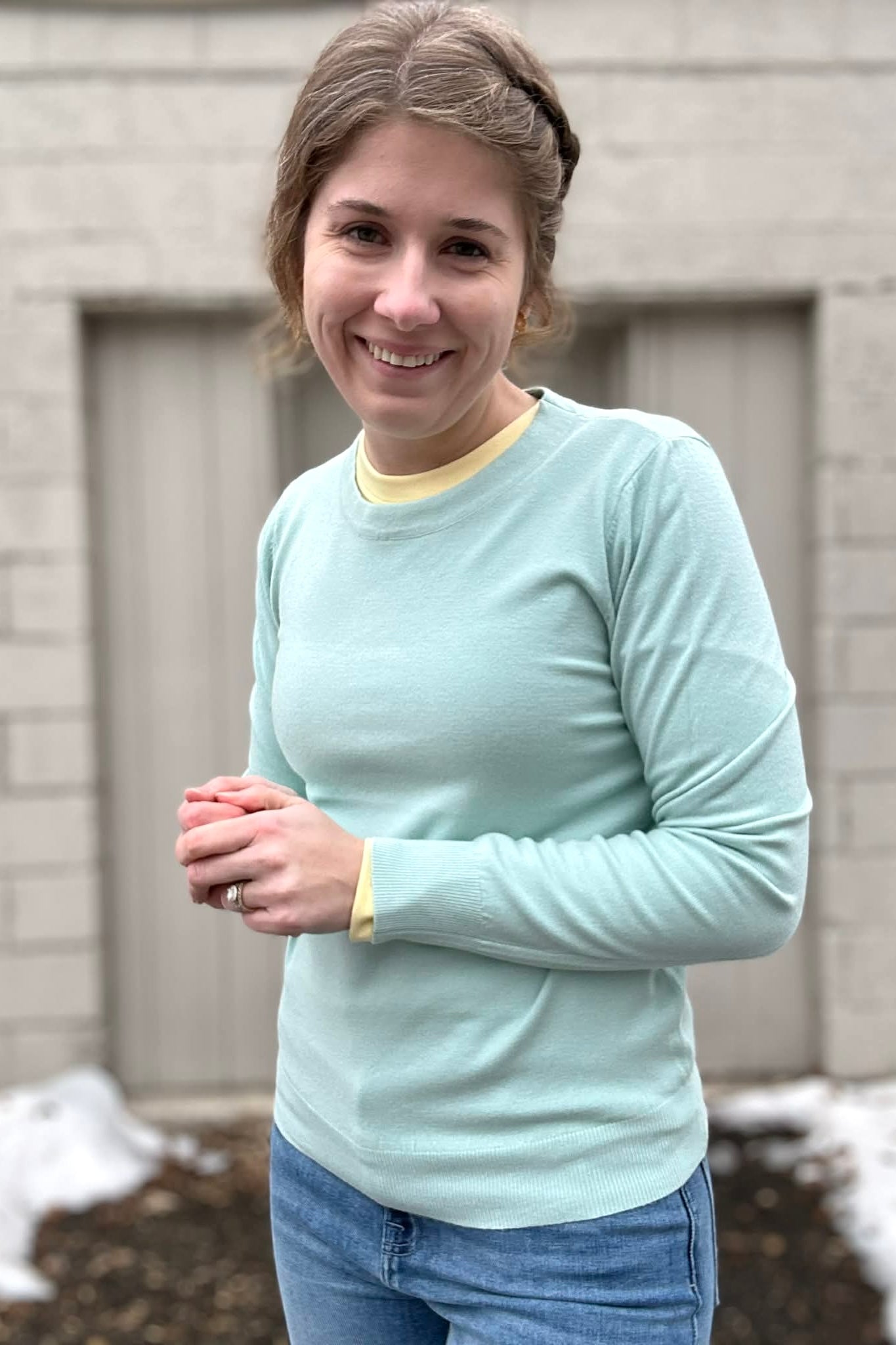Slip into effortless style with this round neck long sleeve knit top—your new go-to layering essential. Crafted from stretchy, soft material that moves with you, it features a relaxed slim fit that flatters without fussing. Perfect for throwing on over anything or wearing solo, this waist-length pullover brings that casual, classic vibe to your everyday rotation. Whether you're keeping it minimal or mixing and matching, this must-have basic is ready for whatever your day throws at you.