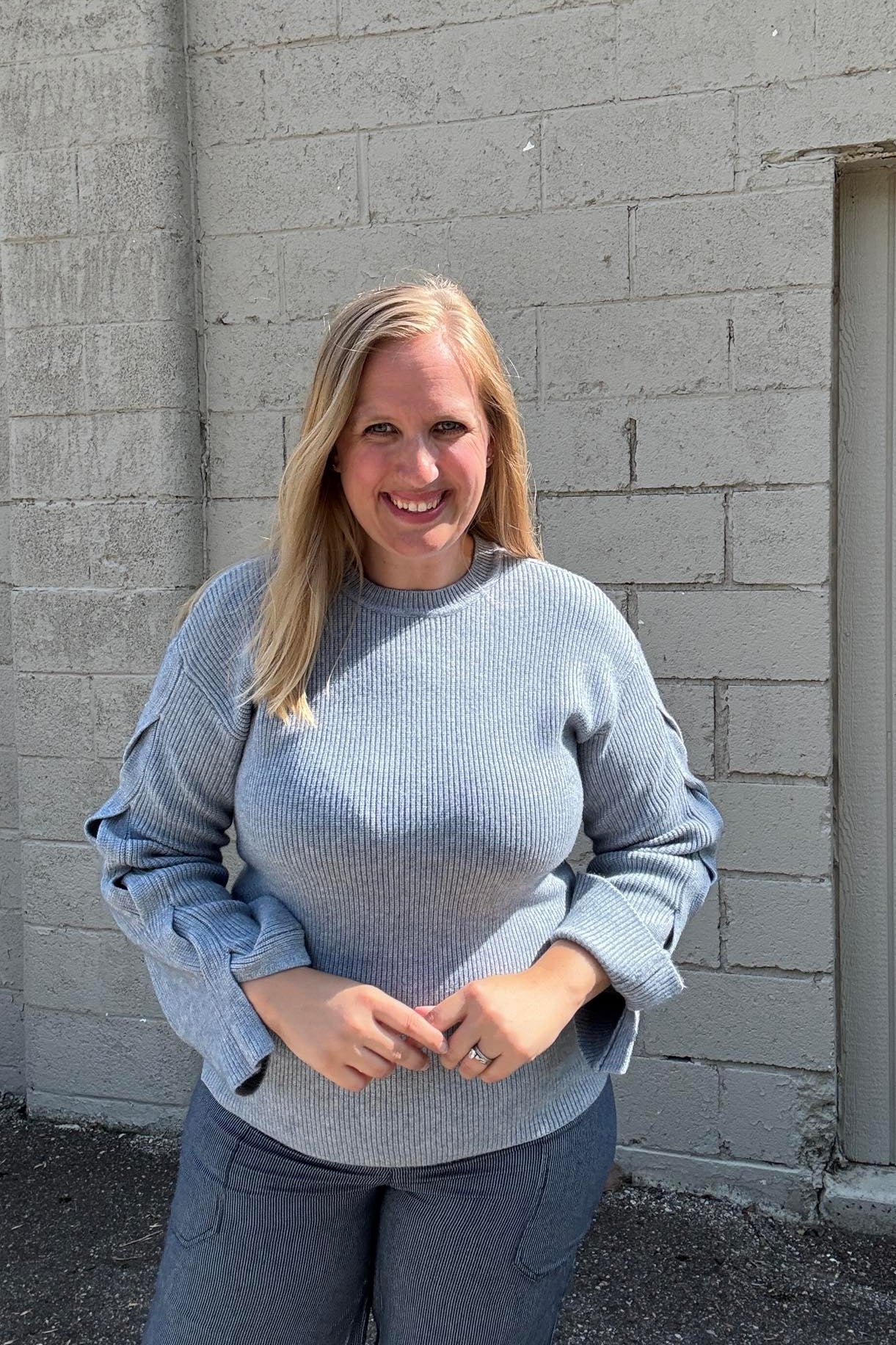 Stay cozy in style with the Charla Blue Cable Sleeve Sweater. Its soft light blue ribbed fabric hugs you comfortably, while playful lace-up braided details add a fun twist. The split wrist gives way to charming bell sleeves that flutter with every move. Perfect for brightening up chilly days with a touch of whimsy!