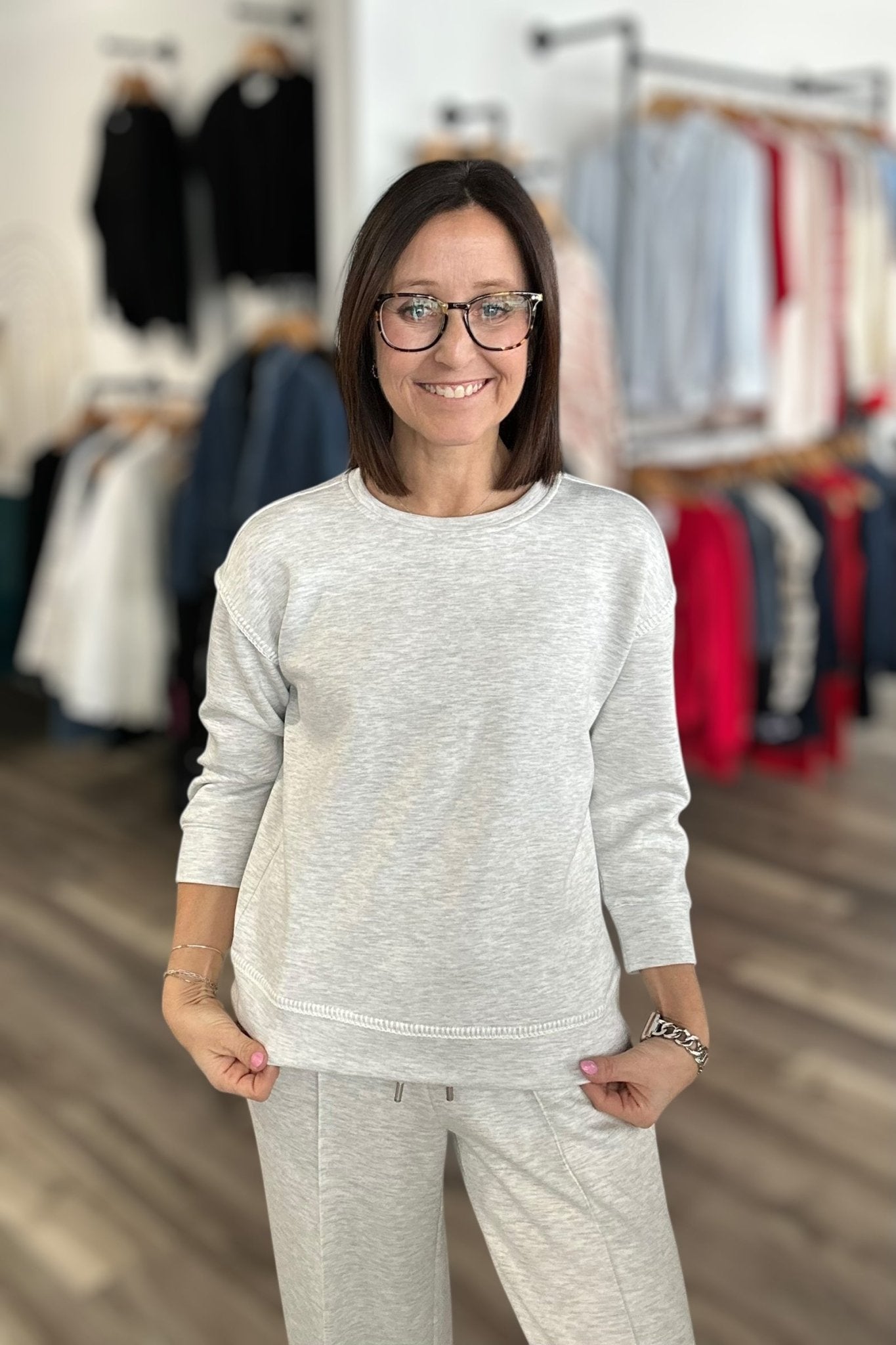 Slip into effortless comfort with this Charlie B scuba top—crafted from butter-soft fabric that feels as good as it looks. The relaxed fit drapes beautifully, while thoughtful stitch detailing and banded waist and sleeves add just the right amount of polish. Perfect on its own or paired with the matching wide-leg joggers for a cozy-chic vibe that takes you from errands to evening hangouts without missing a beat.