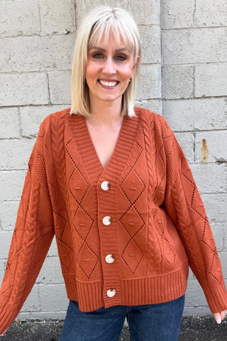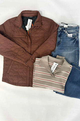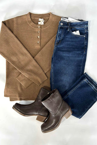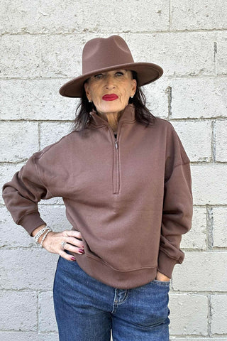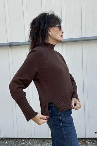 Sandi Brown Mock Neck Long Sleeve Knit Pullover