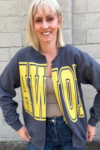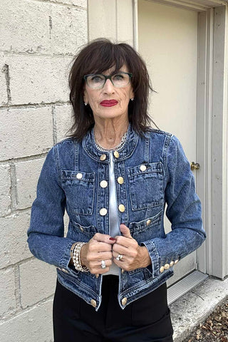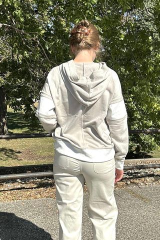 Micki Textured Half Zip Mock top with Stripe & Zipper