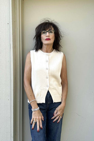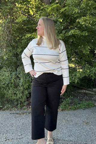 Nia Ivory/Navy Seersucker Striped Knit Top
