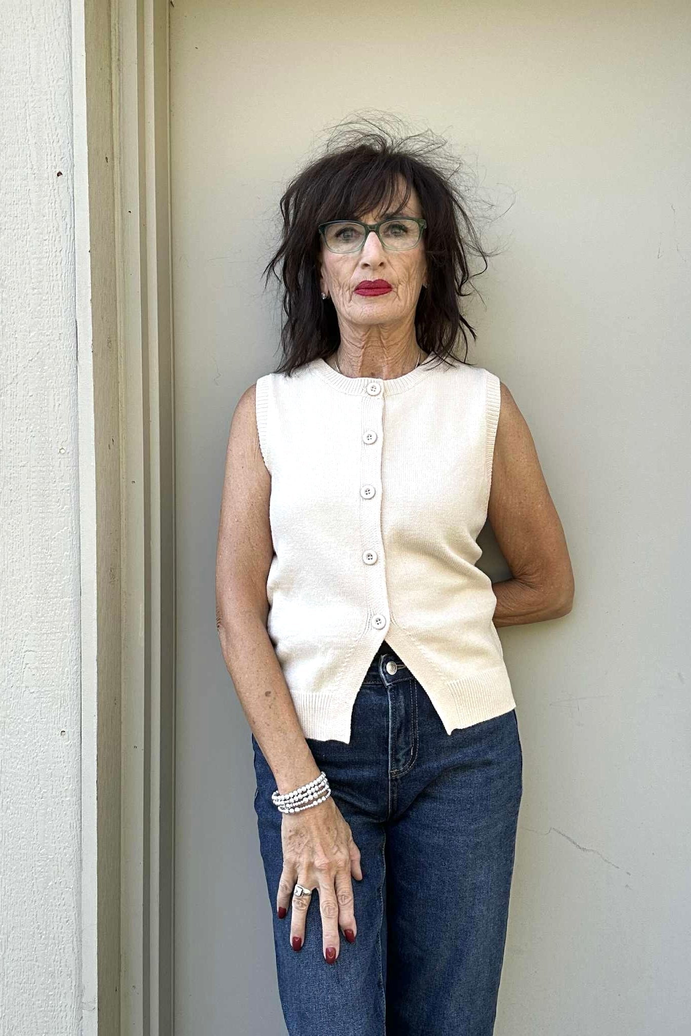 Sabrina Sleeveless Front Button Sweater