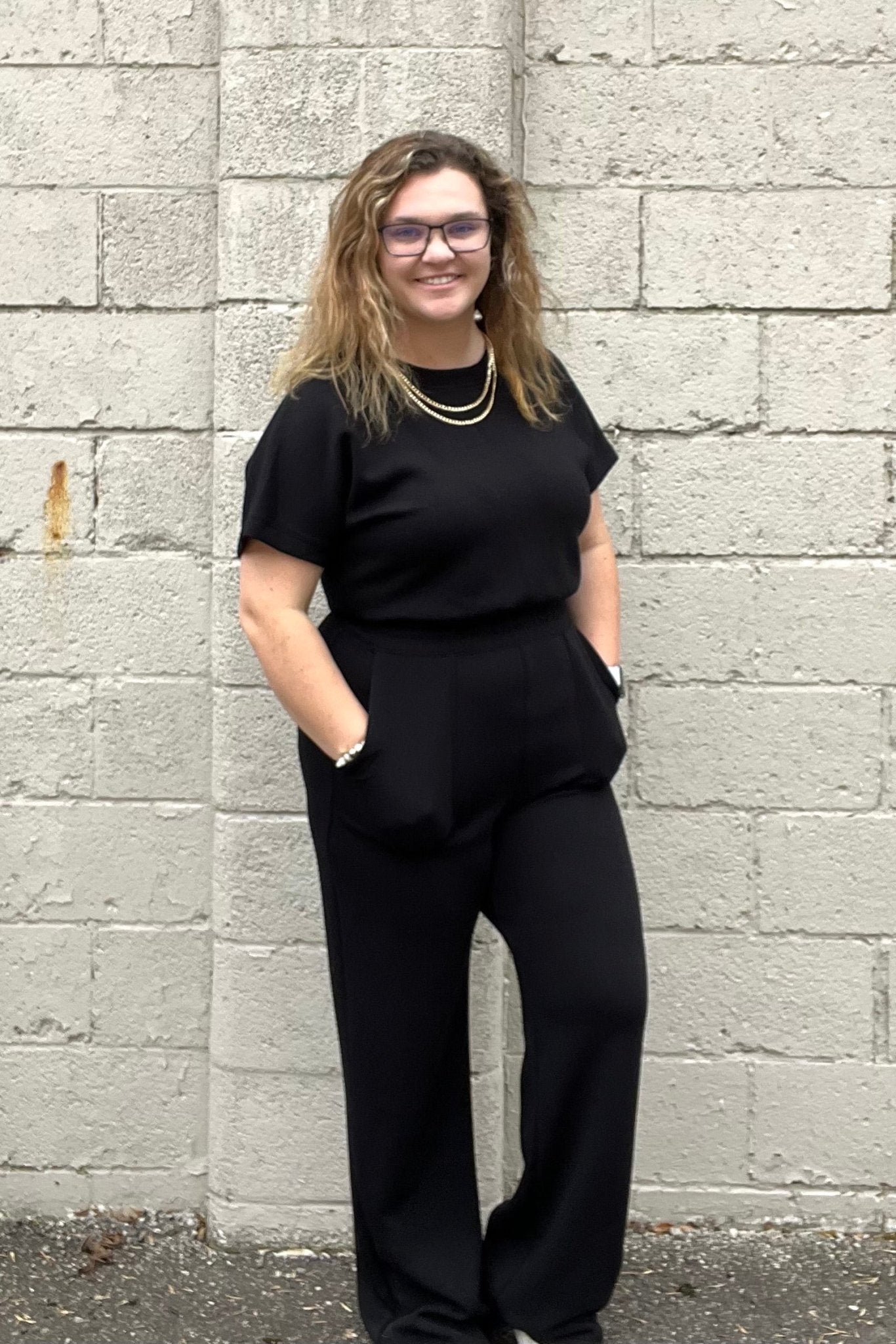 Step into style with the Zara Jumpsuit, designed to flatter your figure with its elastic, cinched waist. The playful short sleeves and sleek black fabric make it a versatile choice for any occasion. Plus, two handy pants pockets add a practical touch without compromising on chic. Perfect for days when comfort and flair go hand in hand!