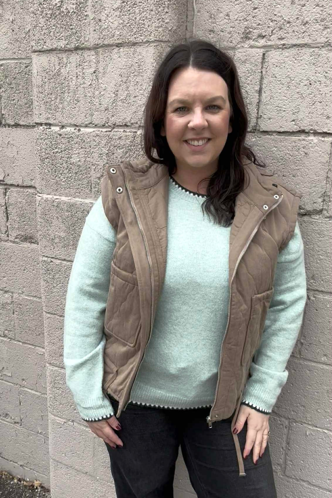 The Darryn Mint Blanket Stitch Sweater is a delightful blend of comfort and creativity! This soft mint sweater showcases playful blanket stitching paired with a charming zig-zag pattern in forest green and cream along the cuffs, hem, and collar. Ribbed detailing at these key points ensures a snug, structured fit while the decorative stitching adds personality and visual flair. Perfect for those who love a little extra character in their basics, this sweater brings whimsy to your everyday rotation. Layer it, wear it solo, or style it however you like—this piece is sure to become an instant favorite that sparks joy every time you reach for it.