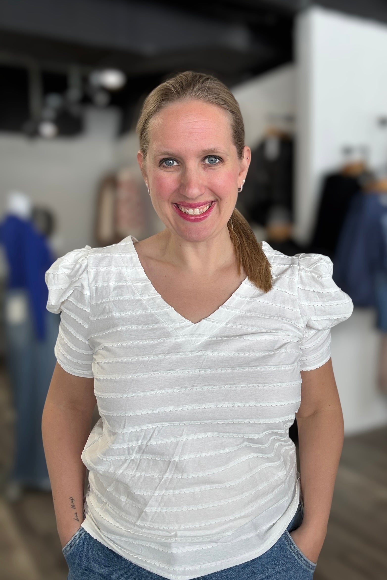 Maxine White Textured V Neck Top