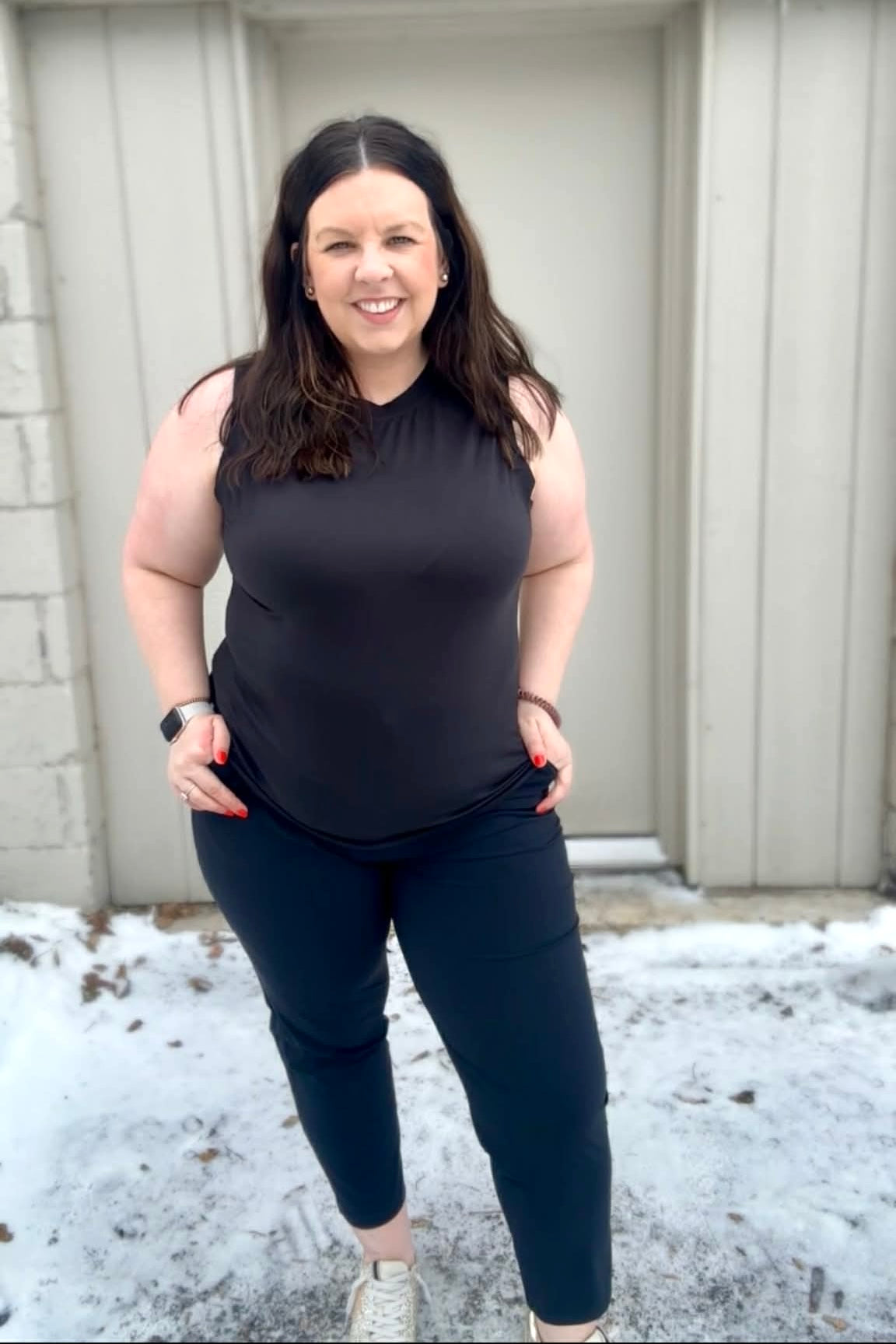 These sleek black pants are your go-anywhere companion for any adventure. Designed with a fitted silhouette that flatters without restricting movement, they're perfect for hiking, travel, or casual outings. The hidden drawstring waistband keeps everything secure while maintaining a polished look. Pair them with virtually any top, from athletic wear to professional pieces, and you're ready to tackle whatever comes your way. Versatile, comfortable, and effortlessly stylish.
