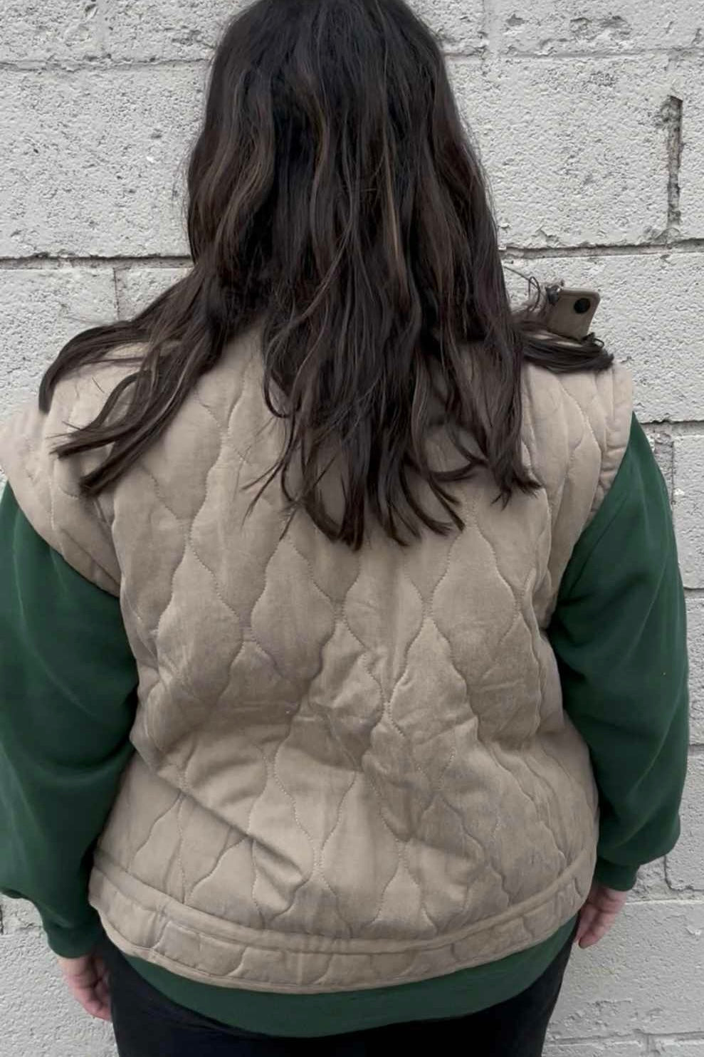 This puffer vest features a sleeveless silhouette and boxy, oversized fit. perfect for layering. room for all types for layers underneath. wide armholes. perfect styles for casual everyday, chilly hikes, and weekend camping trips. a quilted puffer fabrication for all you cold weather in this season. accessory over a turtleneck, sweatshirt, or sweater for an extra layer.