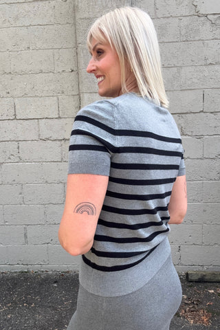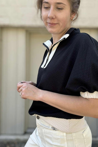 Micki Textured Half Zip Mock top with Stripe & Zipper