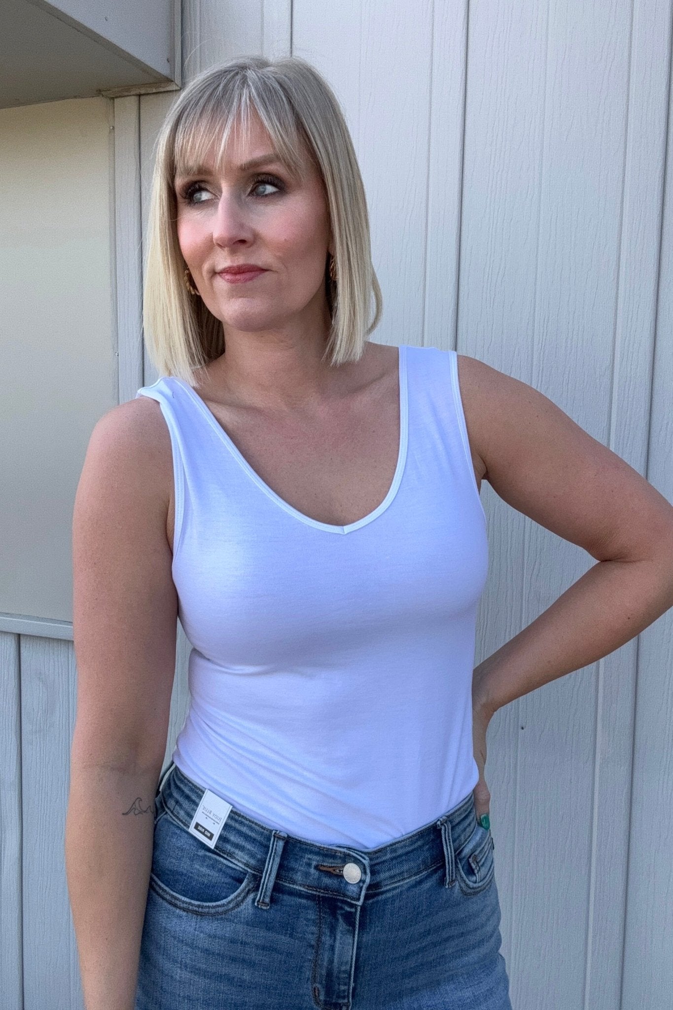 Add a pop of color and comfort to your wardrobe with the Lola Layering Tank! Made from soft bamboo material, this v-neck tank is perfect for layering and comes in three versatile colors. Don't miss out on this great basic!