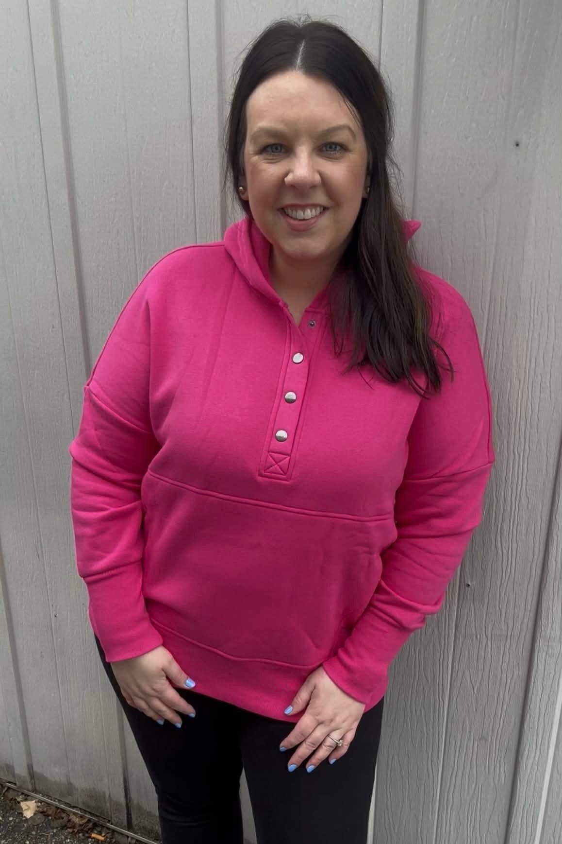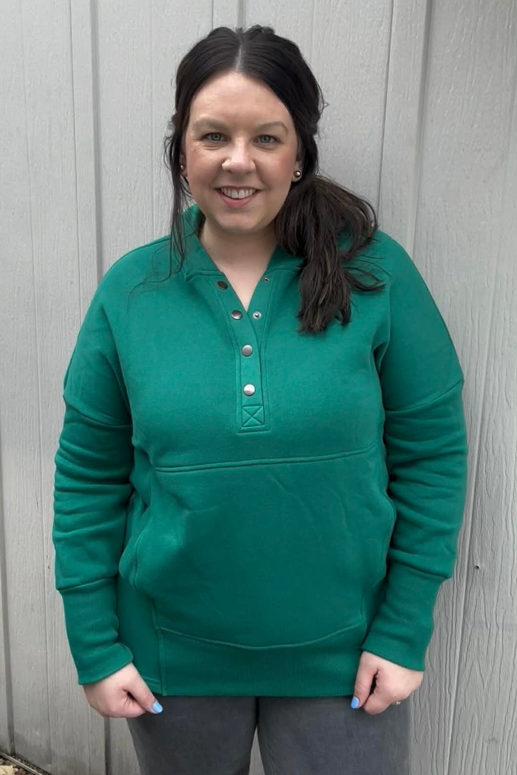 Score an unbeatable deal on this doorbuster sweatshirt that's pure style gold! Featuring a convenient snap neckline for easy layering, you'll love choosing between two gorgeous color options. The kangaroo pocket keeps your hands cozy while ribbed sleeve and hem details add a polished finish. Perfect for casual comfort that doesn't compromise on looks.